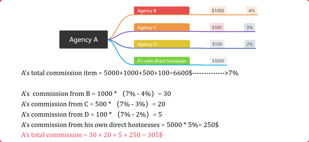The hollah agent commission ratio determined by your hostesses'and sub-agents'total earning in last week.check below to know the details.