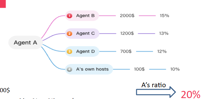 The hollah agent commission ratio determined by your hostesses’ and sub-agents’ total earning in last week.check below to know the details in hollah