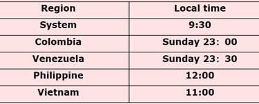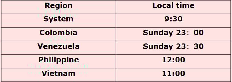 hollah withdrawal time is before 9:30 every Monday in Indian Time (GMT+5:30) corresponds to local time as below :